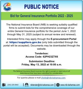 Request for EOI Repairs and Renovations to Marsh Harbour ComplexDecember 9, 2025The National Insurance Board (NIB) is soliciting an Expression of Interest from qualified Bahamian contractors to bid on providing repair works and renovationsRead More...